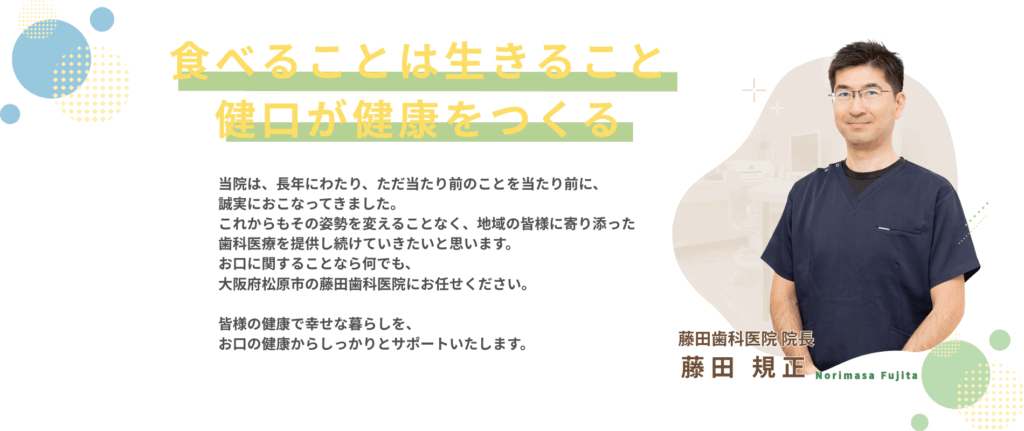 藤田歯科医院では、患者様お一人ひとりの状況を踏まえた上で、最適な選択肢をご提案し、理想の笑顔作りをサポートいたします。