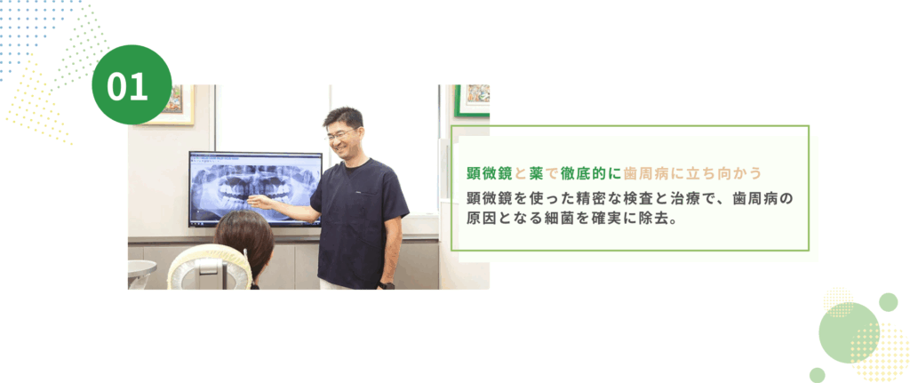 藤田歯科医院では、歯周病の早期発見と内科的治療にも力を入れております。歯周病は一度治療して終わりではなく、継続的なケアが成功の鍵を握っています。